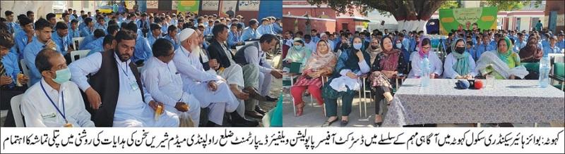 بوائز ہائیر سیکنڈری سکول کہوٹہ میں پاپولیشن ویلفیئر ڈیپارٹمنٹ کہوٹہ کے زیر اہتمام اگاہی مہم