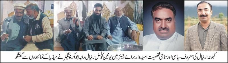 مٹور (نمائندہ پوٹھوار ڈاٹ کوم کبیر احمد جنجوعہ،26نومبر2023) رنیال کی معروف سیاسی اور سماجی شخصیت امیدوار برائے چیئرمین یونین کونسل رنیال راجہ ابوبکر چنگیز نے میڈیا کے نمائندوں سے کہا کہ میرے چچا راجہ سرفراز خان کی وفات ہمارے ساتھ غمگساری کرنے والوں کا شکریہ ادا کرتے ہیں انہوں نے کہا کہ میرے چچا، سابق ناظم یونین کونسل رنیال راجہ چنگیز خان، راجہ خلیل،راجہ شیرباز مرحوم، راجہ عظمت نواز، راجہ احمد یار پپو کے بھائی اور عادل سرفراز راجہ کے والد راجہ سرفراز خان مرحوم سابق ممبر ضلع کونسل راولپنڈی پانچ نومبر کو وفات پا گئے تھے۔ مرحوم کی نماز جنازہ میں ہزاروں لوگوں نے شرکت کی۔ مرحوم کے ایصال ثواب کے لیے فاتحہ و خوانی کے لیے وفاقی وزیر غلام سرور، سید سلطان عالم شلبانڈی شریف، سینیٹر چوہدری تنویر، نائب ناظم ضلع راولپنڈی افضل کھوکھر، تحصیل ناظم راجہ حامد نواز، کرنل سردار شعیب ممتاز، کرنل ممتاز نصر اللہ چٹھہ، شفیق خان ایم پی اے، کرنل افضل کیانی، برگیڈیر راشد، چوہدری بنارس سینیئر رہنما پاکستان پیپلز پارٹی، کامران اسلم سابقہ ایم پی اے، راجہ صغیر ایم پی اے، راجہ ارشد ایم پی اے، چودری ایاز ایم پی اے، راجہ رضوان معید امیدوار ایم پی اے، سید حیدر شاہ امیدوار ایم پی اے، ایاز ریاض خان بالڑہ امیدوار ایم پی اے، اسفند یار راجہ امیدوار ایم پی اے، چوہدری ظہیر امیدوار ایم این اے پریزیڈنٹ پاکستان پیپلز پارٹی، سبتی شاہ بخاری امیدوار ایم این اے، آصف شفیق ستی امیدوار ایم این اے، عامر فدا پراچہ ایم ڈی بیت المال، ملک خالد نواز بوبی وائس پیرریزیڈنٹ پنجاب پیپلز پارٹی، محسن ایوب خان امیدوار برائی ایم پی اے، راجہ عبدالرؤف، حاجی ظفر اقبال ممبر کینٹ بورڈ، چودری افتخار ممبر کینٹ بورڈ، راجہ جہانداد ممبر کینٹ بورڈ، بابو محمد ادریس ممبر کینٹ بورڈ، ملک عمران ممبر کینٹ بورڈ، ملک منصور افسر ممبر کینٹ بورڈ، خالد جدون ممبر کینٹ بورڈ، چوہدری خرم شہزاد ممبر کینٹ بورڈ، راجہ ملازم ممبر ضلع کونسل راولپنڈی، چودری تنویر (ناظم)، بابر بھٹی (ناظم)، چودری عرفان (ناظم)، حاجی اعظم (ناظم)، شاہد اقبال راجہ (ناظم)، راجہ فیاض (ناظم)، چوہدری بابر (ناظم)، ملک تنویر (ناظم)، راجہ الطاف قادر (ناظم) وقار ڈار (ناظم)، راجہ الطاف ڈپٹی مہر، راجہ ساجد کریم (ناظم)، راجہ معین سلطان (ناظم)، راجہ ثاقب ایوب، راجہ اورنگزیب (ناظم)، منظور مغل ایڈوکیٹ (ناظم)، راجہ طارق (سابقہ ناظم)، ملک افتخار (ناظم)، تاشا بھائی (ناظم)، راجہ عشرت نائب ناظم، ملک جہانگیر (سابقہ ناظم)، چوہدری الیاس (سابقہ ناظم)، عمران الیاس (ناظم)، چوہدری ریاست (سابقہ ناظم)، راجہ کامران وکی (سابقہ ناظم)، چودری اعجاز انور (سابقہ ناظم)، ملک نیاز (ناظم)، چوہدری گل نواز نائب ناظم، راجہ خاور جنرل کونسلر، راجہ اعجاز جنرل کونسلر، جہانگیر بھٹی جنرل کونسلر، جاوید اقبال بھٹی جنرل کونسلر، سید آغا راحیل شاہ، بابا اعجاز شاہ ٹیکسلا، سید ثاقب شاہ آستانہ عالیہ غازی امام، سید ریاض حسین شاہ آستانہ عالیہ باوا کرم حسین شاہ، قاضی وحید آستانہ عالیہ مورت شریف، دوست محمد خان، ملک شوکت اعوان آف بگا شیخاں، راجہ ولید کونسلر، چوہدری اسلم کونسلر، چوہدری سہیل کونسلر، نمبردار لعل بھٹی کونسلر، راجہ آصف کونسلر، اختر بھٹی کونسلر، راجہ نقیب کونسلر، ناصر بھٹی کونسلر، سعید یوسف ایڈوکیٹ، فخر شاہ ایڈوکیٹ، راجہ شاہد ایڈوکیٹ، راجہ سعد مظہر ایڈوکیٹ، راجہ مدثر شہزاد ایڈوکیٹ، عثمان شوکت ایڈوکیٹ، راجہ اسرار ایڈوکیٹ، راجہ شکیل کونسلر، اجمل رضا بھٹی ایڈوکیٹ، سردار ہمایوں ایڈوکیٹ، اسد عباسی ایڈوکیٹ، مہران اعجاز ایڈوکیٹ، چوہدری شیر افضل ایڈوکیٹ، ملک ساجد اعوان ایڈوکیٹ سابقہ جنرل سیکرٹری راولپنڈی بار، سید جعفر شاہ ایڈووکیٹ، منصور خٹک ایڈوکیٹ، چوہدری انعام ایڈوکیٹ، راجہ گفتار ایڈوکیٹ،چوہدری ساجد قدیر ایڈوکیٹ، سجاد بھٹی ایڈوکیٹ، قاری غلام محمد چشتی، قاری حامد نقشبندی، قاری مشتاق سلطانی، اشتیاق لک، حامد خٹک، ملک امریز حیدر، احسن مغل مرشد 
