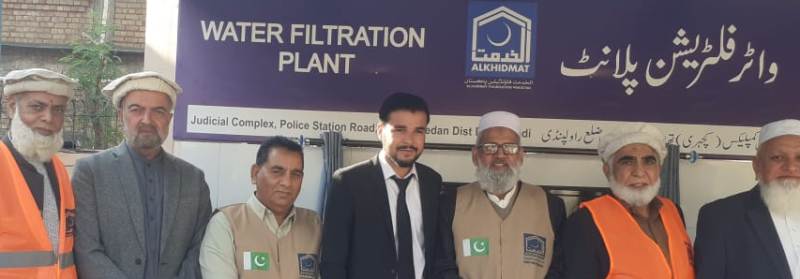 Kallar Syedan: ( Pothwar.com, Ikram ul Haq Qureshi, December 8, 2023)—Saeed Qalb Hasan, a member of the Pakistan Bar Council, asserted on Thursday that Al-Khidmat Foundation is not just an organization of Jamaat-e-Islami but a representative organization of the entire nation that has proven its capabilities through its actions and contributions. He expressed these views during the inauguration ceremony of a water filtration plant organized by Al-Khidmat Foundation under the supervision of the Al-Khidmat Foundation, costing 1.8 million, took place in the Judicial Complex, with Tahir Amin Advocate, the President of the Bar, presiding over the event. The responsibilities of organizing the event were carried out by Raja Abid Hussain Advocate.