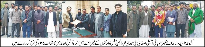 Candidate for Member of Provincial Assembly Constituency PP7 Abdul Majeed Mughal has submitted his nomination papers
