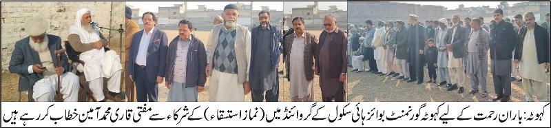 باران رحمت کے لیے کہوٹہ گورنمنٹ بوائز ہائی سکول کے گروائنڈ میں (نماز استسقاء) کی ادائیگی