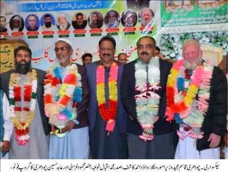 Chakswari: (Pothwar.com, Allah Ditta Bismill. January 26, 2024) — Mangla Dam Affairs Minister Chaudhry Qasim Majeed while congratulating Chaudhry Mohammad Azim Patwari on becoming the President of Patwariyan Association of Tehsil Islamgarh said that we hope that Chaudhry Mohammad Azim Patwari will defend the rights of his colleagues and also provide relief to the public in his profession. The mutual problems of the people will be resolved. He congratulated Chaudhary Mohammad Azim Patwari in the swearing-in ceremony held in Chakswari.