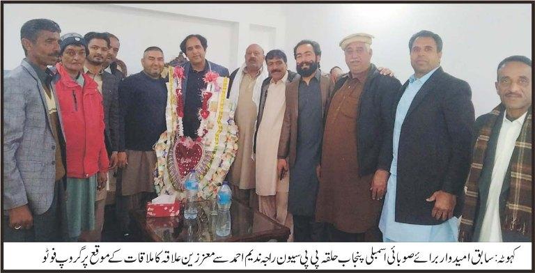 راجہ ندیم احمد سے معززین علاقہ کی ملاقاتوں کا سلسلہ بدستور جاری