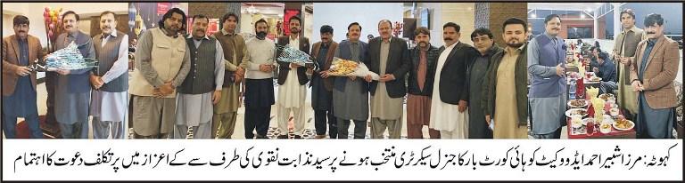 A banquet was organized in honor of Mirza Shabir Ahmed Advocate being elected as the General Secretary of the High Court Bar.