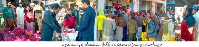 چکسواری: (پوٹھوار ڈاٹ کام،نمائندہ خصوصی اللہ دتہ بسمل۔22, مارچ,2024ء) — تحصیلدار عمران یوسف نے صبح سویرے سبزی فروٹ منڈی میں ہونے والی فروٹ اور سبزی کی بولی کی مانیٹرنگ کی جبکہ سبزی فروٹ کا ناپ تول کرتے ہوئے جملہ اشیاء کی قیمتوں کے ریٹ مرتب کیے اس موقع پر بولی میں حصہ لینے والے گاہکوں، بوپاریوں اور اڑہتیوں سمیت دیگر افراد بھی موجود تھے۔تحصیلدار چوہدری عمران یوسف کی موجودگی میں بولی کروانے پر اشیاء خوردونوش بالخصوص سبزی فروٹ کے مناسب ریٹ طے پائے گئے۔انتظامیہ کی طرف سے سبزی فروٹ،اڑھتیوں سے کہا گیا کہ وہ عام دوکانداروں کو سستے داموں پھل اور سبزیاں مہیا کریں تاکہ پرچون فروش بھی لوگوں کو زیادہ سے زیادہ ریلیف دے سکیں۔