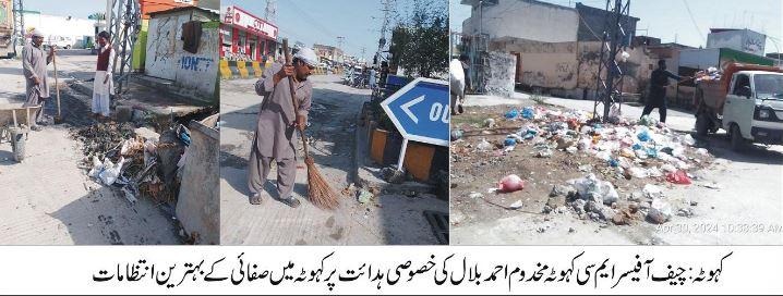 Kahuta: On the special instructions of Chief Officer Kahuta Makhdoom Ahmad Bilal, the best cleaning arrangements take place