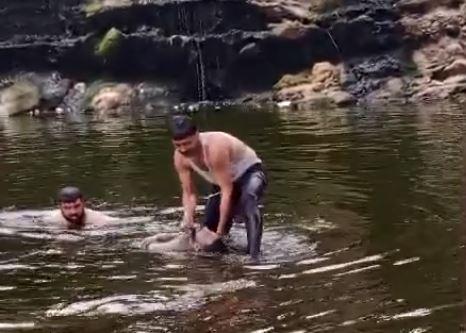 Kahuta: A Boy and girl jump in to Nala Ling from the bridge as the young boy dies