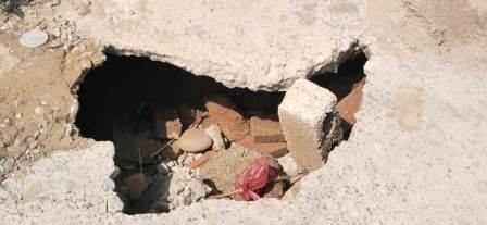 The rain caused a deep hole on the road leading to Mohalla Ghousia Dhok Makk