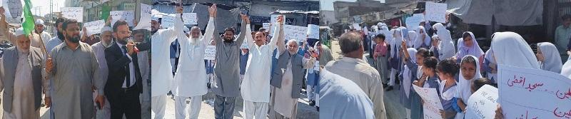 جماعت اسلامی کہوٹہ کے زیراہتمام فلسطینیوں سے اظہار یکجہتی کے لیے کہوٹہ شہر میں تاجروں کے ہمراہ اظہار یکجہتی ریلی کہوٹہ پریس کلب کے ممبران وکلاء کی بھی شرکت اس موقع پر نجی سکول کے طلباء و طالبات نے ہاتھوں میں فلسطین کے حق میں بینرز اٹھائے جبکہ اس موقع پر فلسطین کے حق میں نعرے بازی بھی کی گئی ریلی بس اڈہ کہوٹہ سے شروع ہوئی اور مچھلی چوک اختتام پذیر ہوئی ریلی میں امیر جماعت اسلامی حلقہ PP7ابرار حسین عباسی،رہنماء اسلامی ملک عبدالروف، سردار مسعود، راجہ غلام حیدر ایڈووکیٹ، صدر پریس کلب کہوٹہ راجہ عمران ضمیر، جنرل سیکرٹری حاجی اصغر حسین کیانی، جنرل سکرٹری تنظیم انسانی حقوق ارسلان اصغر کیانی ایڈووکیٹ، شہروز رسول ایڈووکیٹ سمیت تاجروں اور جماعت اسلامی کے راہنماوں نے شرکت کی اس موقع پر دوران ریلی پرزور نعرے بازی کی گئی اور فلسطین غزہ کے مسلمانوں سے یکجہتی کا اظہار بھی کیا گیا مقررین نے اس موقع پر کہا کہ امت مسلمہ کو یکجاں ہونا چاہیے فلسطین میں ظلم و بربیت کے پہاڑ ڈھائے جا رہے ہیں اقوام نتحدہ انسانی حقوق کی نام نہاد تنظمیں کہاں ہیں اب وقت آگیا ہے کہ امت مسلمہ ایک ہو کر ان دہشت گرد ممالک کا مقابلہ کریں اس موقع پر احتجاج جاری رکھنے جا کہا گیا اور اس جدوجہد میں بھرپور حصہ لینے کا اعادہ بھی کیا گیا۔