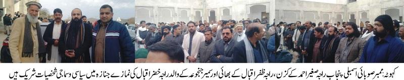 راجہ خضر اقبال وفات پا گے نمازے جنازہ میں بڑھی تعداد میں سیاسی وسماجی شخصیات کی شرکت
