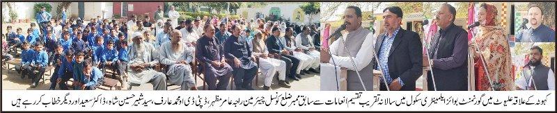 گورنمنٹ بوائز ایلیمینٹری سکول علیوٹ میں سالانہ تقریب تقسیم انعامات، طلبہ کی شاندار کارکردگی پر بھرپور داد