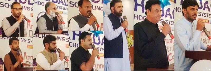 کہوٹہ کے معروف تعلیمی ادارے خداداد سکولینگ سسٹم میں سالانہ تقسیم انعامات کی تقریب کا انعقاد، فرسٹ، سیکنڈ، تھرڈ پوزیشن حاصل کرنے والے طلبہ میں انعامات تقسیم کئے گئے،معززمہمانوں نے سکول کے ہونہار طلبا ء وطالبات کی شاندار کاکر دگی پر ادارہ ہذا کے پرنسپل راجہ فیصل لطیف اور تمام ٹیچرز کی کاکر دگی کو سراہا ہے،تفصیل کے مطابق گذشتہ روز معروف ماہر تعلیم راجہ فیصل لطیف کے زیر انتظام ان کے معروف تعلیمی ادارے خداداد سکولینگ سسٹم میں سالانہ تقسیم انعامات کی تقریب کا انعقادکیا گیا جس میں کہوٹہ کی معروف سیاسی،سماجی وعلمی شخصیات،سابق ناظم یوسی مواڑہ راجہ الطاف حسین، عنائت اللہ ستی صدر پی ٹی آئی تحصیل کہوٹہ،امیر تحریک کہوٹین ناصر راجہ، سردار مظہر اقبال، سید علی رضاء شاہ، راجہ اظہرآف علیوٹ،ماسٹر اختر ہوتھلہ سکول،محمد سفیر سیفی،ملک عاصم،سید صداقت شاہ سمیت بڑھی تعداد بچوں کے والدین اور معززین علاقہ نے شرکت کی اس موقع پر بچوں نے ملی نغمیں اور ٹیبلو پیش کیے، مختلف موضع پر خوبصورت تقاریر کیں جبکہ مقررین نے سکول کے ہونہار طلبا ء وطالبات کی شاندار کاکر دگی پر ادارہ ہذا کے پرنسپل راجہ فیصل لطیف اور تمام ٹیچرز کی کاکر دگی کو سراہا اور تعلیم کی اہمیت پر خطابات کیے ان کا کہنا تھا کہ عام طور پر کہا جاتا ہے کہ تعلیم و تربیت کریں جبکہ پہلے تربیت کی ضرورت ہوتی ہے بعد میں تعلیم کی، اگر مائیں اپنے بچوں کی تربیت کا آغاز بچپن سے کر دیں تو نتیجہ بہت اچھا ملے گا۔