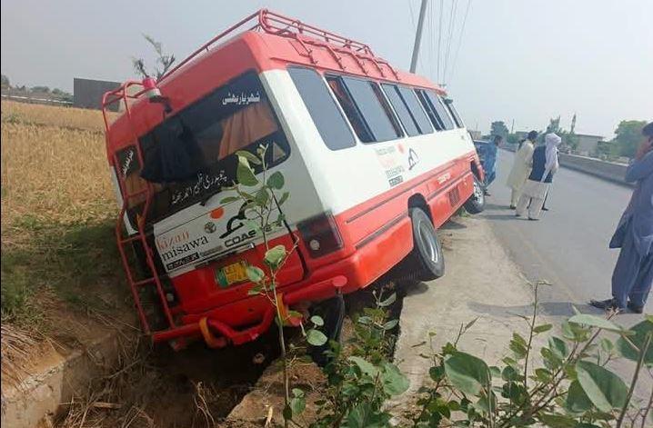 مندرہ چکوال روڈ پر کوسٹر کے پھسلنے کا واقعہ، بڑی حادثے سے بچاؤ، تمام مسافر محفوظ