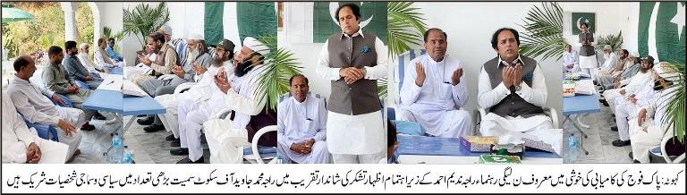 Gratitude Ceremony Held by PML-N Leader Raja Nadeem Ahmed to Celebrate Pakistan Army’s Victory