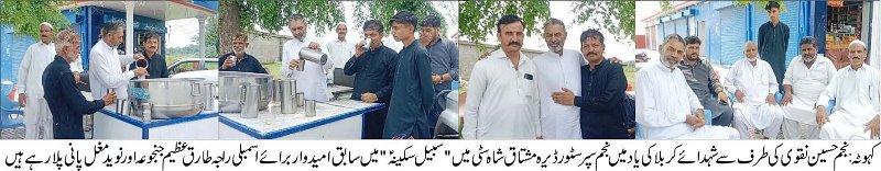 “Sabeel-e-Sakina (A.S)” Set Up at Najam Super Store in Memory of Karbala Martyrs; Raja Tariq Azeem and Naveed Mughal Participate