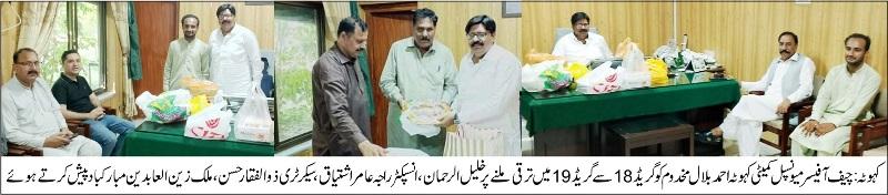 چیف آفیسر میونسپل کمیٹی کہوٹہ احمد بلال مخدوم گریڈ 19 میں ترقی پا گئے