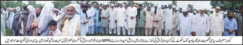 Prominent Political and Social Figures Attend Funeral of Raja Firaaq, Cousin of Raja Javed of Skot