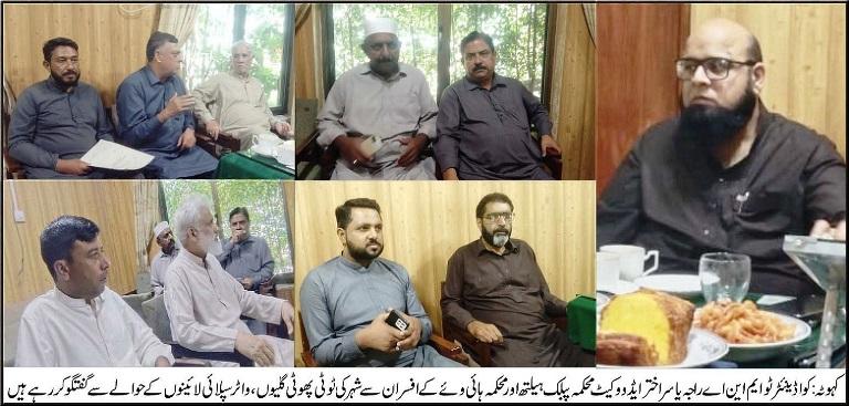 راجہ یاسر ایڈووکیٹ کی پبلک ہیلتھ و ہائی وے حکام سے ملاقات، نالہ کلہمن پر چک ڈیم کا اعلان، ٹوٹی سڑکوں اور پائپ لائنوں کی جلد مرمت کی ہدایت