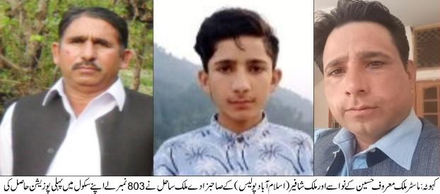 ملک ساحل انجم نے میٹرک 2025 میں سائنس گروپ میں پہلی پوزیشن حاصل کی