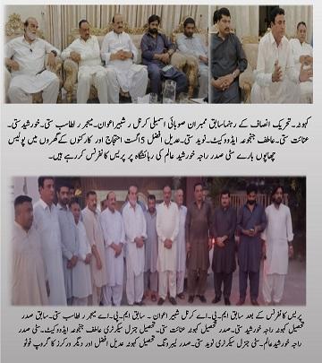 انہوں نے کہا کہ 5اگست کو نہ صرف تحصیل کہوٹہ اور کلرسیداں بلکہ کوٹلی ستیاں و مری سمیت خان کی رہائی کے لیئے احتجاجی کال پر بھر پور قافلے جائیں گے۔ انہوں نے مزید کہا کہ سرکاری مشینری اور انتظامیہ کے تمام وسائل استعمال کرکے مسلم لیگ (ن) کہوٹہ میں یوتھ کنونشن کا انعقاد مسلم لیگ کی ناکامی کا منہ بولتا ثبوت ہے۔ انہوں نے کہا کہ راجہ عاطف ایڈووکیٹ ہائی کورٹ کے گھر مٹور میں پی ٹی آئی کے چند اراکین کا آپس میں مل بیٹھنا بھی مسلم لیگ (ن) کو پسند نہ آیا اور راجہ عاطف ایڈووکیٹ کے گھر پولیس نے چھاپہ مارا اور چادر و چاردیواری کا تقدس پا مال کیا جبکہ مسلم لیگ (ن) اور سرکاری انتظامیہ کے لیئے دفعہ 144نافظ نہ ہے۔ انتقامی کاروائی کی بھر پور مذمت کرتے ہیں۔