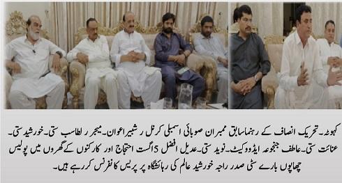 They strongly condemned the police raid on the house of Raja Atif Advocate in the Matore area, where a few PTI workers were holding a private meeting. They accused the administration of violating the sanctity of the home and claimed that Section 144 is not being applied to PML-N gatherings.