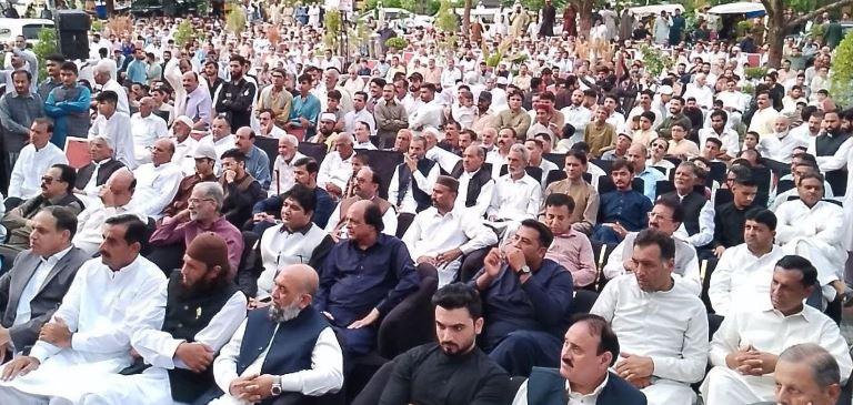 Sharing the stage with him were notable figures, including Chaudhry Azam Pervaiz, Dr. Zeeshan Azam, Raja Javed Ashraf, Raja Khurram Pervaiz, Shaukat Mehmood Qazi (Chairman, Qazi Group of Companies), Dr. Muhammad Kaleem Khalid Chaudhry, Peer Nadeem Sultan, and Saeen Muhammad Safdar.