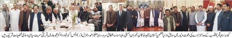 کہوٹہ کی معروف سیاسی،سماجی و کاروباری شخصیت راجہ قمر یعقوب کا صاحبزادہ،نوجوان سیاسی و کاروباری شخصیات راجہ آفاق قمر اور راجہ فہد قمر کا چھو ٹا بھائی راجہ مجاہد قمر رشتہ ازواج میں منسلک،دعوت ولیمہ میں سابق وزیر اعظم پاکستان شاہد خاقان عباسی سمیت ممبران اسمبلی،عسکری شخصیات،سابق بلدیاتی نمائندوں سمیت بڑی تعداد میں سیاسی، سماجی اور کاروباری شخصیات کی شرکت،دعوت ولیمہ کی تقریب گلبر گ گلرین اسلام آباد کے خوبصورت حال میں منعقد ہوئی،تقریب میں سابق وزیر اعظم پاکستان شاہد خاقان عباسی، لیفٹینٹ جنرل (ر) سید انیس اکبر،مسلم لیگ ن کے ایم این اے راجہ اسامہ اشفاق سرور، مسلم لیگ ن کے ایم پی اے راجہ صغیر احمد،کرنل شہاب جنجوعہ، سابق وزیر داخلہ کے معاون خصوصی شیخ ساجد الرحمن،سابق وزیر اعظم پاکستان کے معاونین حافظ عثمان عباسی،شوکت اقبال جنجوعہ،معروف سیاسی و سماجی شخصیت ڈاکٹر محمد عارف قریشی،رئیس دروالہ چیئرمین چوہدری محمد حنیف،چوہدری منور، چوہدری شکیل ڈی ایچ اے،چوہدری قمر،معروف سیاسی وسماجی شخصیت چوہدری محمد عظیم آف میرپور حال مقیم یو کے، چیئرمین یونین کونسل دوبیرن خورد راجہ ظفر اقبال بگہاروی، وائس چیئرمین مرزا محمد مسعود،سابق ممبر ضلع کونسل افضل کھوکھر،سابق ممبر ضلع کونسل راولپنڈی سابق چیئرمین یوسی ہوتھلہ راجہ عامر مظہر امیدوار برائے تحصیل ناظم کہوٹہ،سیاسی و سماجی شخصیات چوہدری قیوم،سابق ممبران ایم سی کہوٹہ راجہ وحید احمد خان،قاضی اخلاق احمد کھٹڑ،قاضی عبد القیوم،کواڈینیٹر ٹو ایم این اے راجہ یاسر اختر ایڈووکٹ، محمد حفیظ عباسی،چیئرمین یوسی بیورراجہ محمد فیاض، چیئرمین یوسی کھڈیوٹ سجاد ستی، چیئرمین یوسی دکھالی راجہ شوکت حسین، چیئرمین یوسی سکھوراجہ سجاد،نوجوان سیاسی و سماجی شخصیت راجہ عمران ستار جنجوعہ،محکمہ مال کہوٹہ کے گردآور راجہ احتشام انور، راجہ طاہر آف مٹور، سید نعیم اکبر شاہ، معروف سیاسی و سماجی شخصیات چوہدری مدثر عظیم، وجاہت مسعود جنجوعہ کہوٹہ راجگان، چوہدری وقار مشتاق، چوہدری سجاد،رفاقت جنجوعہ، معروف سماجی و کاروباری شخصیت خواجہ نوید،چوہدری قاسم جندران،نوجوان سیاسی شخصیت ثاقب ستی، ماسٹر راجہ تیمور اختر، راجہ معراج اسلم،راجہ تنویر بنارس، صحافی کبیر احمد جنجوعہ سمیت بڑی تعداد میں سیاسی وسماجی شخصیات نے شرکت کی،میزبان راجہ قمر یعقوب نے تمام معزز مہمانوں کی تواضع پر تکلف کھانوں کے ساتھ کی۔