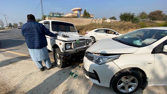 ڈی ای او راولپنڈی کی گاڑی بے قابو ہو کر کار سے ٹکرا گئی، مسافر محفوظ