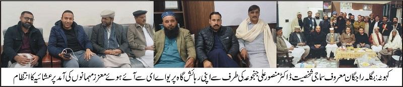 مٹور: ڈاکٹر منصور علی جنجوعہ کی جانب سے یو اے ای سے آئے معزز مہمانوں کے اعزاز میں عشائیہ، سیاسی و سماجی شخصیات کی بھرپور شرکت
