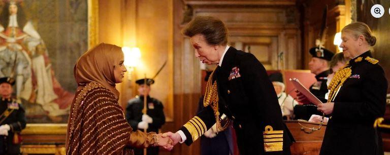 London (Pothwar.com — Mohammad Naseer Raja | January 23, 2026): Zahrah Mahmood, president of Ramblers Scotland, was pictured on Wednesday at the Palace of Holyroodhouse in Edinburgh after being formally appointed a Member of the Order of the British Empire (MBE). The honour recognises her significant contribution to voluntary service in Scotland and her dedication to improving access to the outdoors for people from all backgrounds. She was awarded by Anne Princes Royal.